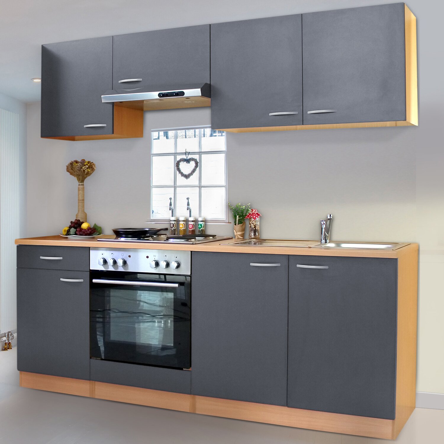 Respekta Küchenzeile 220 Cm Grau Wildeiche Nachbildung